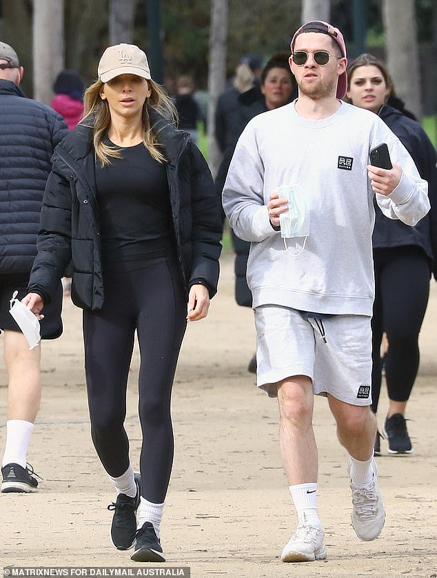 And former wag nadia bartel was among thousands of tired melburnians leaving for their daily exercise on the first day of the new restrictions on friday.
